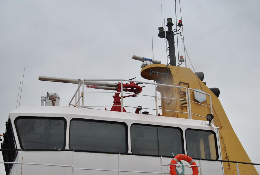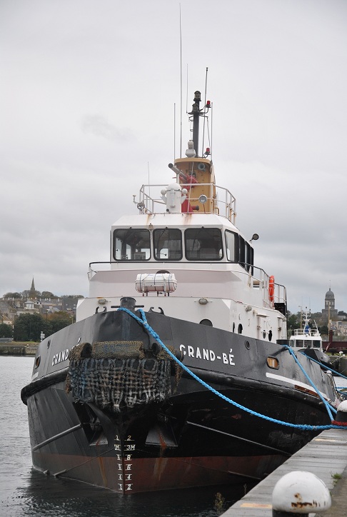 Ce sont les remorqueurs du Port de SAINT MALO qui aident à la sortie du sas ou des manoeuvres de paquebots qui restent au large de DINARD sur les coffres.