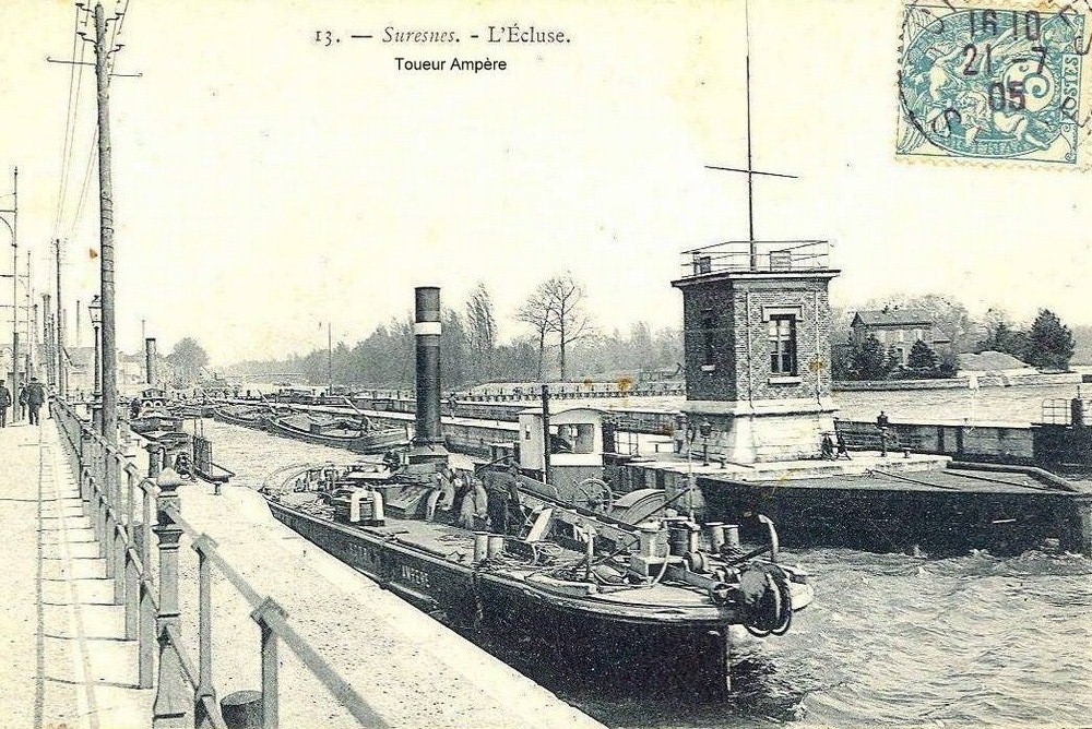 Il y a eu plusieurs toueurs nommés "Ampère". L'un d'eux est exposé à terre à St-Leger-des-Vignes, une autre à Riqueval, deux autres sont à flot (dont un travaillant) toujours à Riqueval...