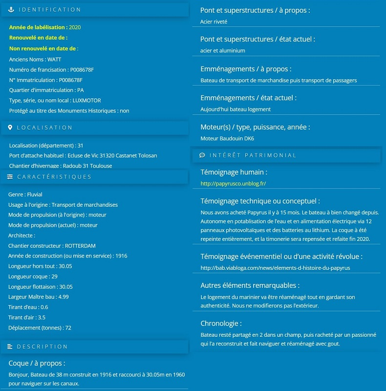 Le PAPYRUS a été labellisé PATRIMOINE MARITIME ET FLUVIAL en 2020.
