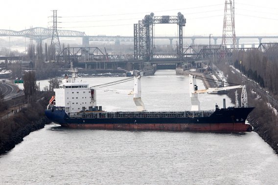 Le navire BBC Steinhoeft s'est échoué dans le chenail à l'entrée de la Voie maritime, entre l'écluse du pont Victoria et le pont Jacques-Cartier.