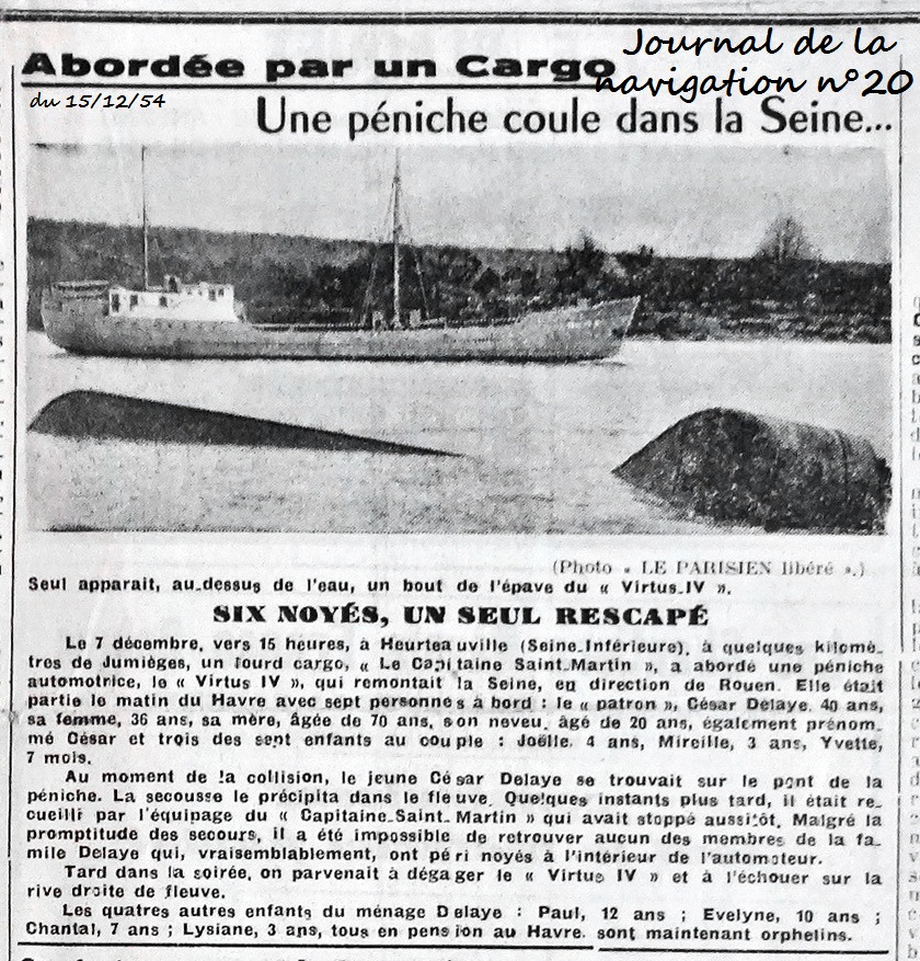 Cette catastrophe a vivement ému le monde maritime et fluvial de la région. (JMM, n° 1826, 1954-12-16)