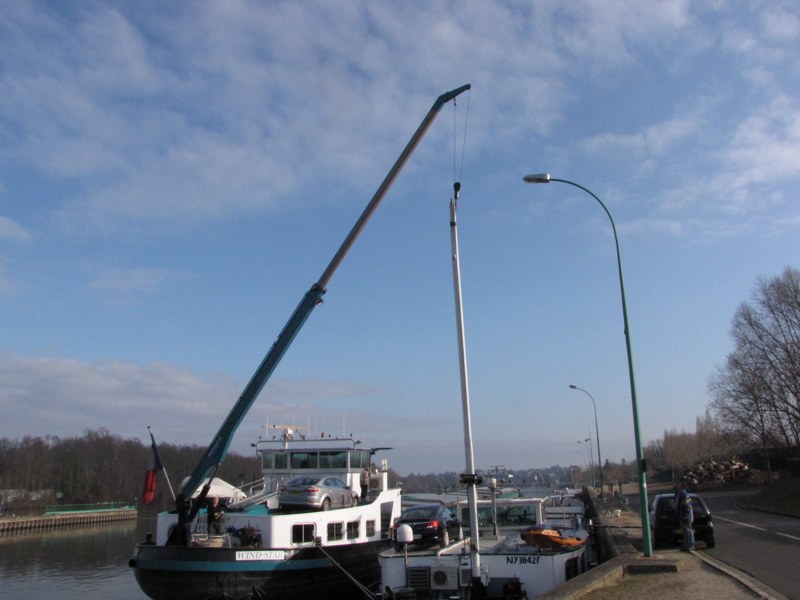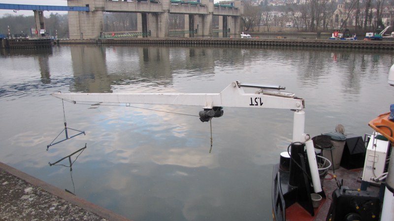 il y a 3 ANS j'ai perdu mon helice en rentrant dans l'ecluse cela fait drole etaler 1500 Tonnes a l'aide de cordes av et ariere les mains avait chauffer serieursement hier comme d'habitude preparation de la grue pour debarquer la voiture a l'amont pour aller chercher les enfants a l'ecole et voila :oops:
