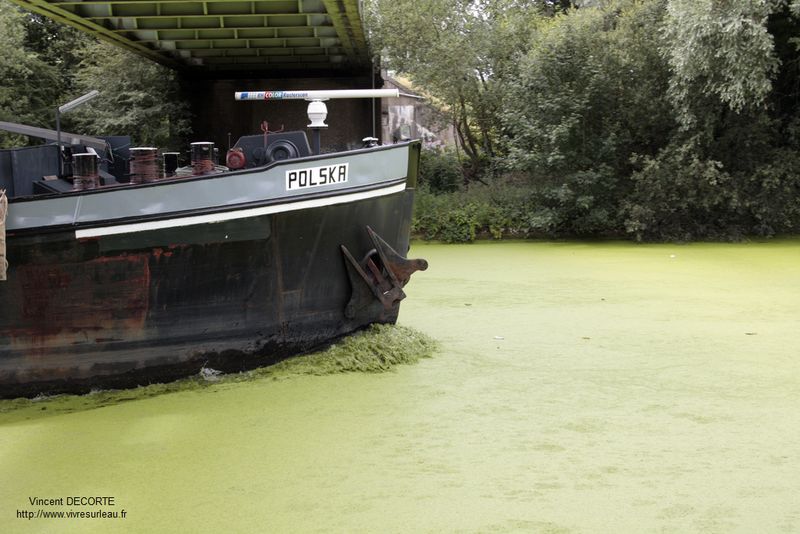 Attaque des lentilles d'eau autour du "LE GOELAND" sur le canal de beuvry: