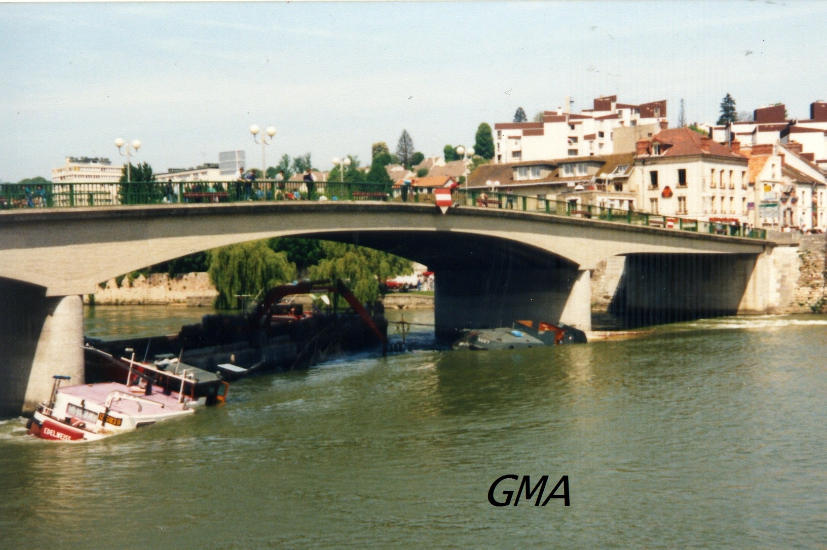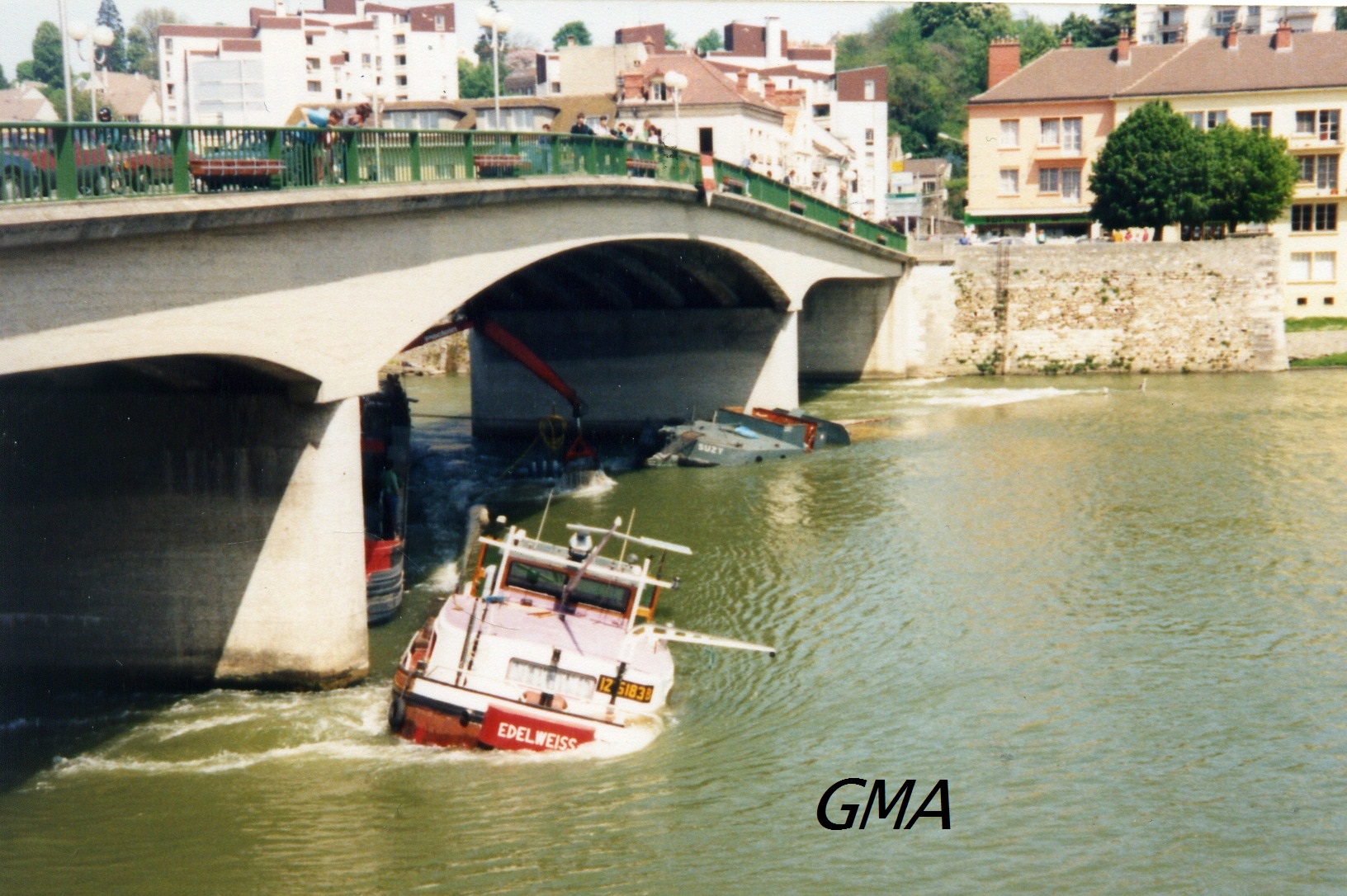 qui suite a une rupture de barre, s'est retrouve en travers du pont de Corbeil, SANS COULER HEUREUSEUMENT.
