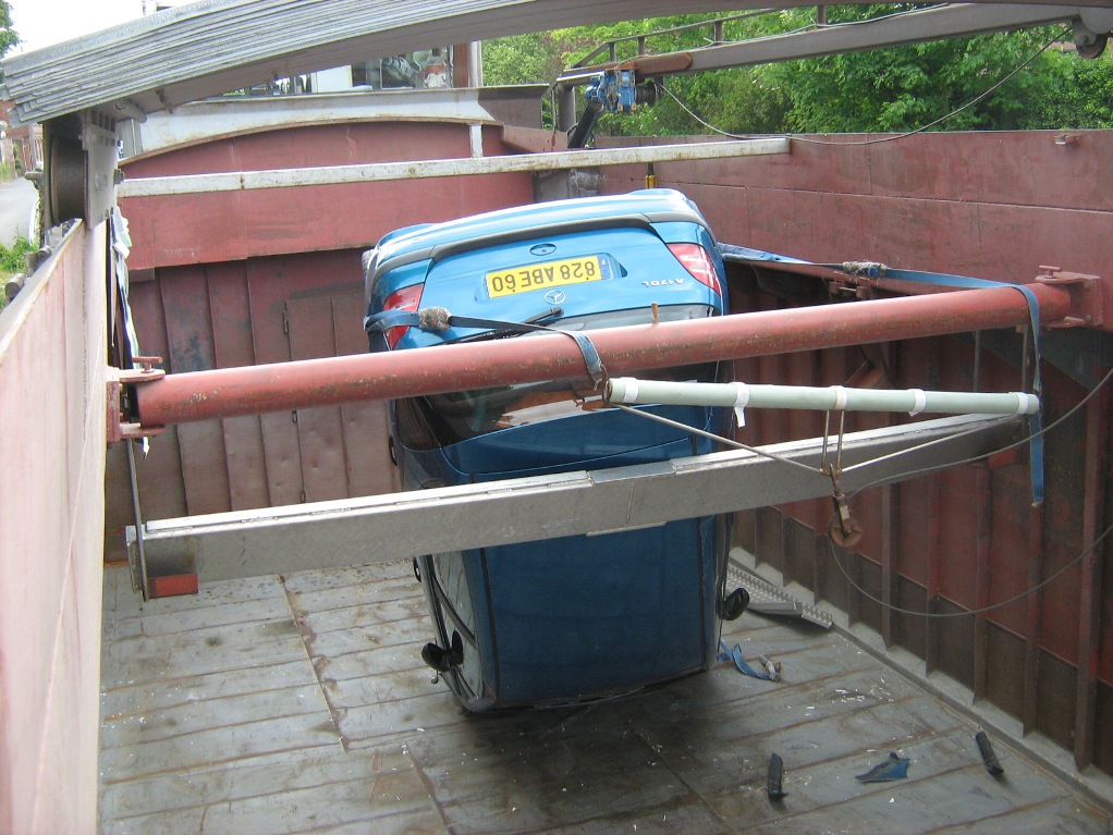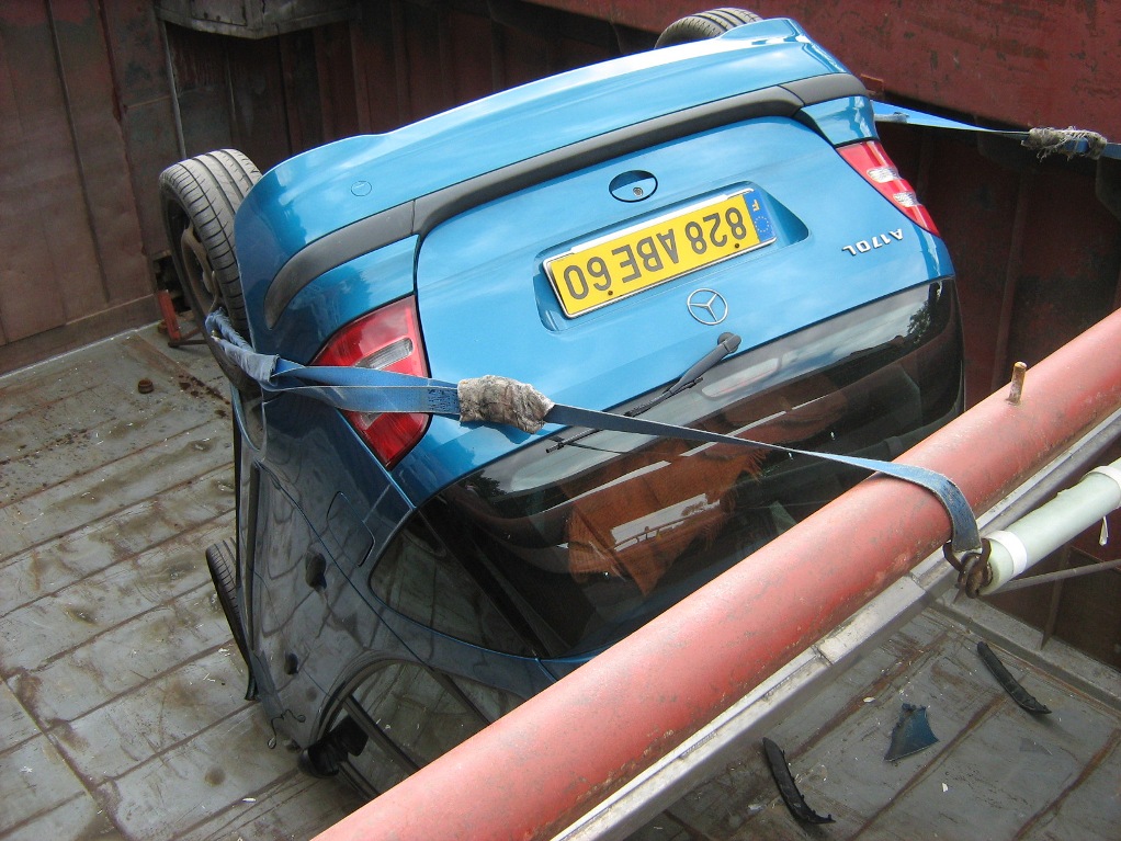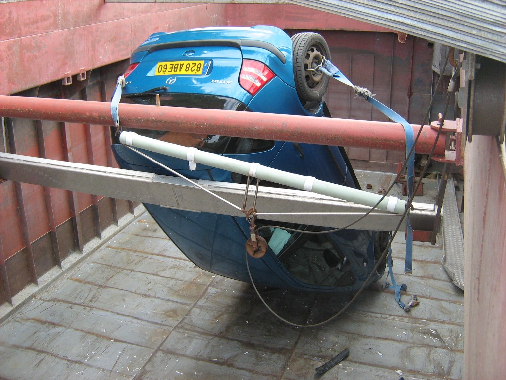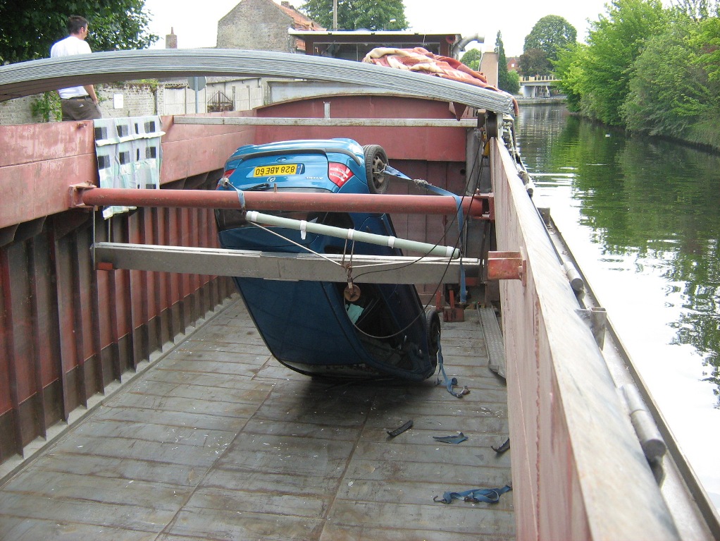 C'est arrivé il y a trois ans, embarquement de la voiture dans la cale sur des ponts. La voiture était au dessus de la cale quand une sangle a cassée. Nous étions sur les plats-bords chacun d'un coté, une main posée sur la roue pour empêcher la voiture de tourner.Tout s'est passé très vite. Un craquement et la chute rapide. On a eu peur après. pas le temps de réagir, elle était arrivée dans la cale et sans abimer le bateau. On était toujours sur les plats-bords, un certain temps avant de réaliser.Pas de blessés mais maintenant évidement j'ai la trouille.