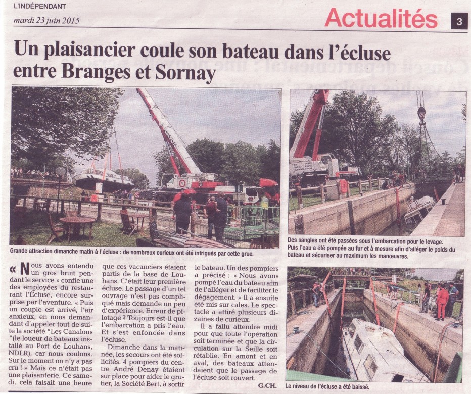 Un plaisancier coule entre Branges et Sornay (Seille)
