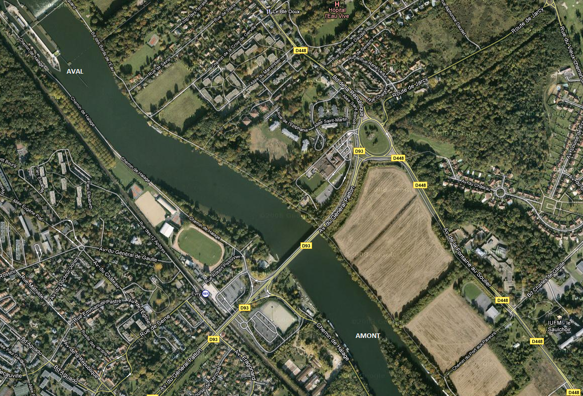 je vois une ile a l'amont du pont , ça serai bien Evry