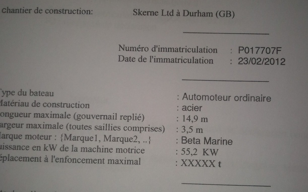 . vedette de construction neuve en provenance directe de GB en 2009 ; mais son commanditaire a dû se désister (plus de sous).