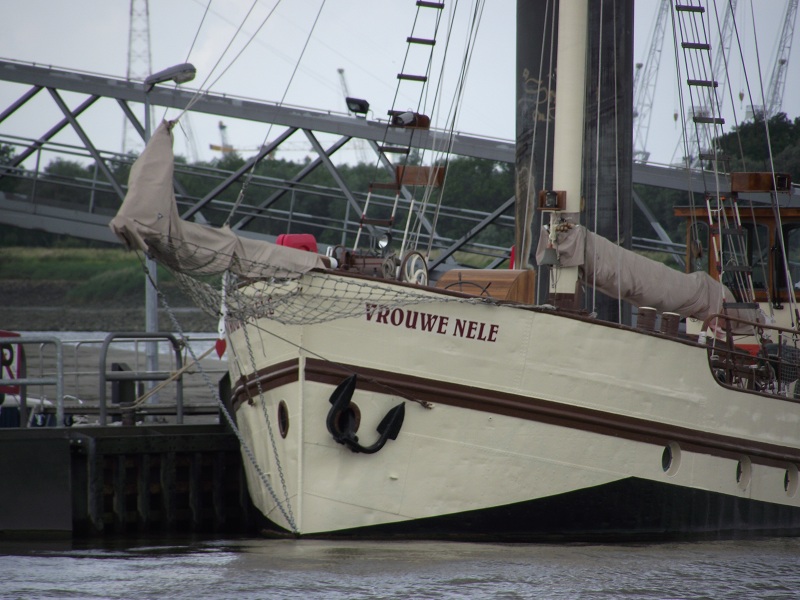 VROUWE NELE , (un clipper ? )a été construit en 1896 au chantier VanDamme (chantier racheté en 1955 par Van Praet) à Baasrode. En acier et fond plat. Au départ il servait pour le transport de charbon. Au début de la seconde guerre mondiale , ce schooner est gréé comme une goélette à deux mâts (cabotage) et transportait de l'huiles (entre autres de l'huile de baleine) depuis les pays scandinaves vers Amsterdam. Lorsque cela ne fut plus rentable, le bateau a stoppé son activité en 1956. Il est resté à quai, à pourrir, jusqu'en 2006 où un fervent amateur lui a redonné un nouveau départ.