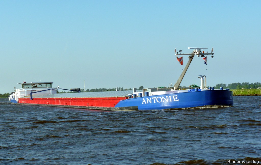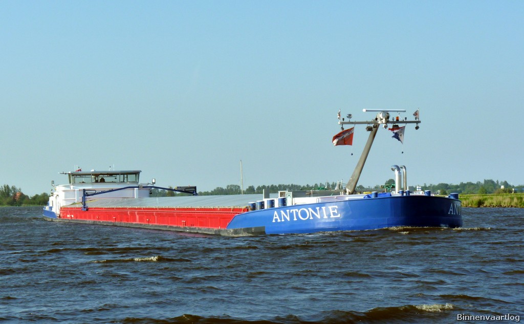 Antonie , 109,99 x 11,45 x 3,45 , 3008 ton , Bouwjaar 2008 , Werf Dazheng Shipbuilding Co in Dalian ( China ) en Koedood Dieselservice in Hendrik Ido Ambacht ( Nederland ) , 1700 pk Mitsubishi en 571 pk Scania Veth-Jet kopschroef , ex Pride Of Faial , eigenaar H. Lenten in Vreeswijk , ENI 02330094