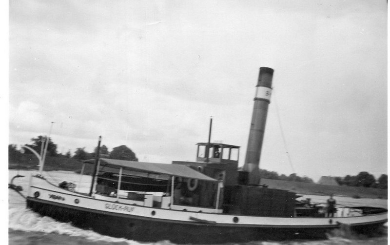 Si on oublie (ou plutôt ca va être une problème du clavier, comme je ne peux pas écrire "oe" ou "c" avec virgule) les deux petits points sur le "u" et écrit "Gluck auf", la prononciation reste juste si prononcé par un francais! Mais l`orthographie juste est "Glück auf". "Glück auf!" ou "Glückauf!" (sur le remorqueur "Glück-auf")) est une ancienne salutation des mineurs (je ne sais pas si les mineurs l`utilisent encore) et une devise traditionelle pour un bateau dans l`époque du charbon et d`acier. On ne trouvera pas cette devise sur un bateau moderne.