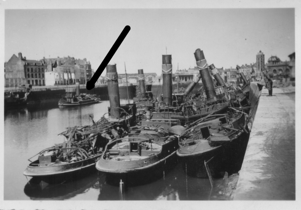 des photos montrant un remorqueur rhénan (ou peut-être deux?) à Dunkerque pendant la guerre.