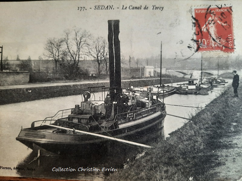 Le revoici sur cette CPA de 1910 à Sedan . Sur le coté est mentionné Seilles , certainement le port d'attache et une date 1907 (année de construction?)