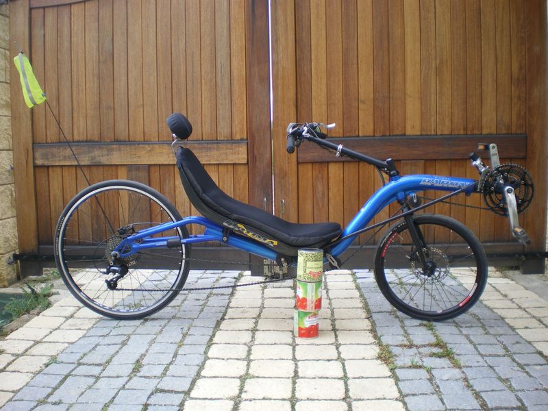 Avec ce genre de monture, il faut des freins à disque ( au moins à l'avant, roue de 20 pouces)) car même avec des jantes en céramic, ça chaud fort dans les descentes. J'ai des potes qui parlent de plus de 100 à l'heure en descendant le Ventoux, et 120 dans certains cols alpins.