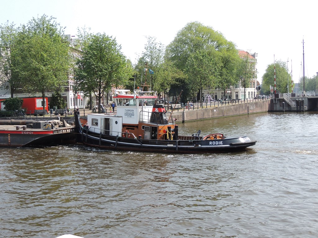 Rodie , 16,96 x 4,47 x 2,24 , 15 ton , Bouwjaar 1948 , Werf De Vliet Den Heeten in Veur ( Nederland ) , 408 pk Cummins , ex Oranje , ex Abeo II , ex 2 x Noordenwind , ex Romatra , ex Heros , ex Rodie , eigenaar Rodie Watertransport BV in Zaandam , ENI 03031300.