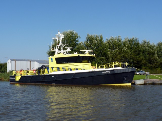 RWS 76 , 23,95 x 5,64 x 1,32 , Bouwjaar 2010 , Werf De Haas in Maassluis ( Nederland ) , 2 x 885 pk Caterpillar , eigenaar Rijkswaterstaat Rijksrederij in Rijswijk