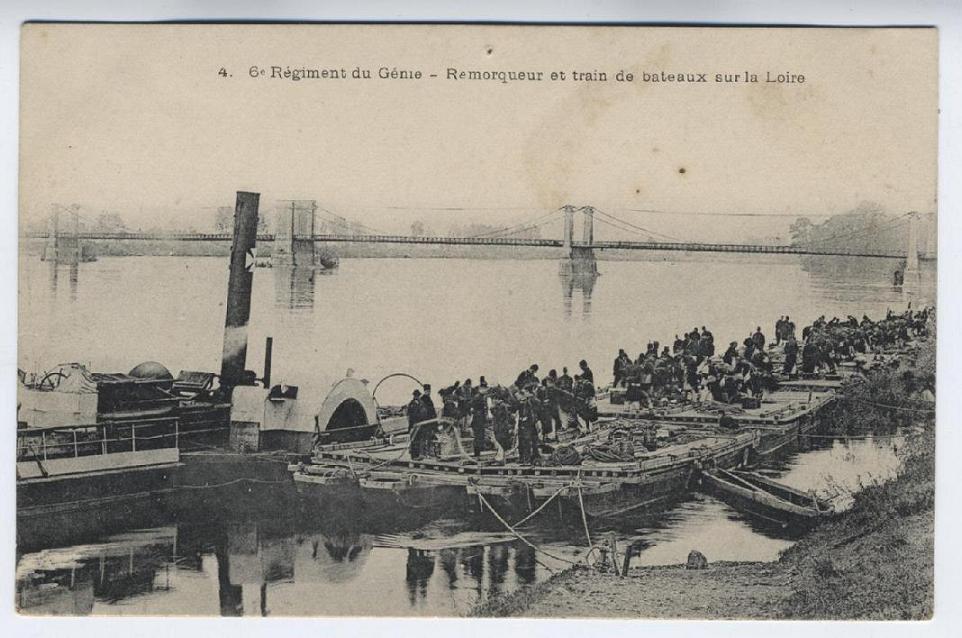 Les seuls vapeurs à aubes qui circulaient encore au début du 20e siècle étaient d'anciens 'inexplosibles" transformés en remorqueurs. Je n'ai jamais non plus entendu parler de vapeur à aubes militaires sur la Loire angevine, le Génie ne disposant que de touts petits remorqueurs. La carte postale de davidship peut montrer un vapeur civil (il y en avait à Montjean), effectuant des manoeuvres en sous traitance pour l'armée.