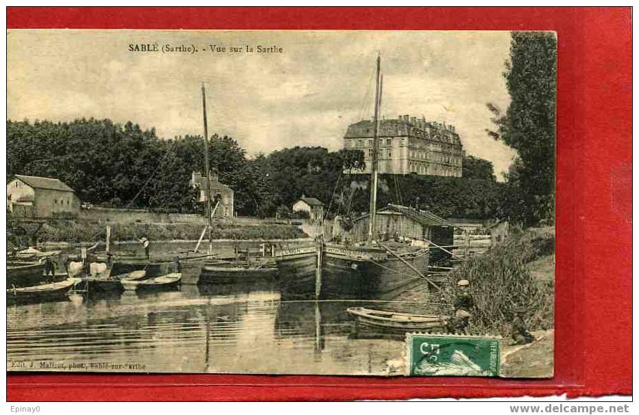 Carte de ce type de bateau Chargé a gauche de la photo a Sablé sur la Sarthe.