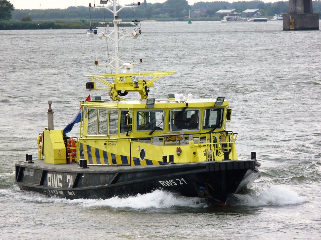 RWS 21 , 18,90 x 5,25 x 1,25 , Bouwjaar 1998 , Werf Damen Shipyard BV in Hardinxveld-Giessendam ( Nederland ) en De Hoeven in Drimmelen ( Nederland ) , 2 x 605 pk MTU , ex RP 27 , eigenaar Rijkswaterstaat Rijksrederij in Rijkswijk , ENI 03900082