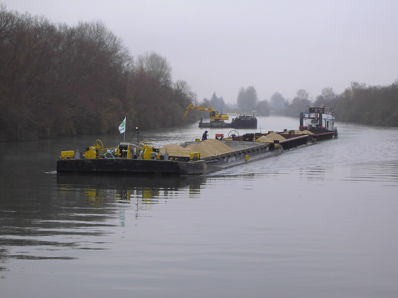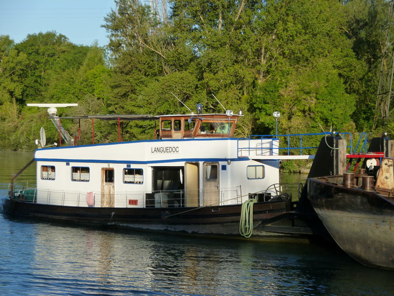 Aucune photo de ce bateau depuis 6 ans alors voici le LANGUEDOC pris lundi à Choisy le Roi avec un beau convoi sur le nez.