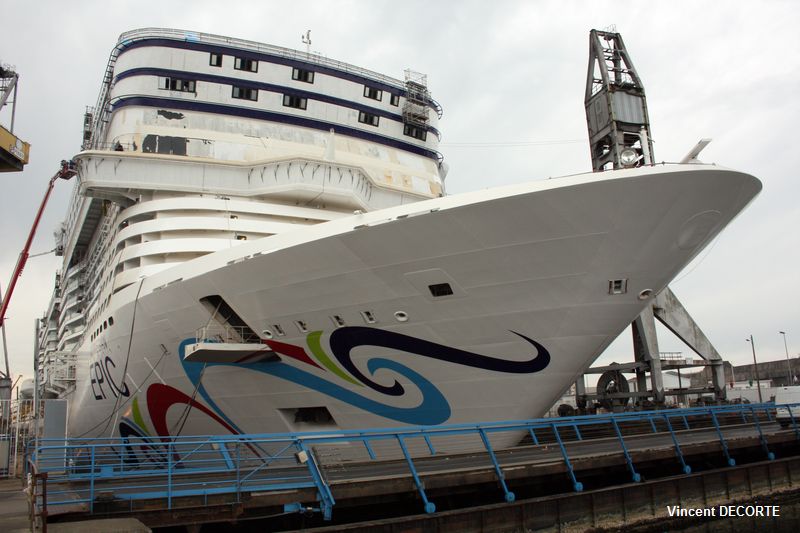 Le Norvegian Epic, plus gros paquebot construit par les chantiers navals, subit la dernière phase de travaux avant sa livraison.