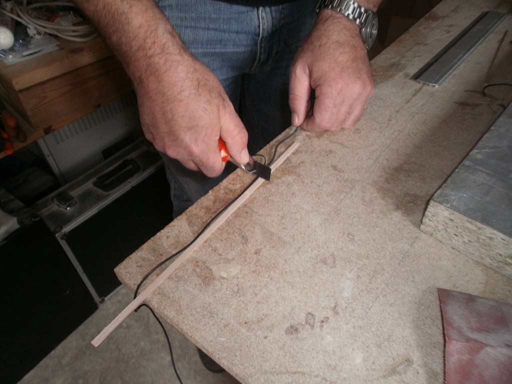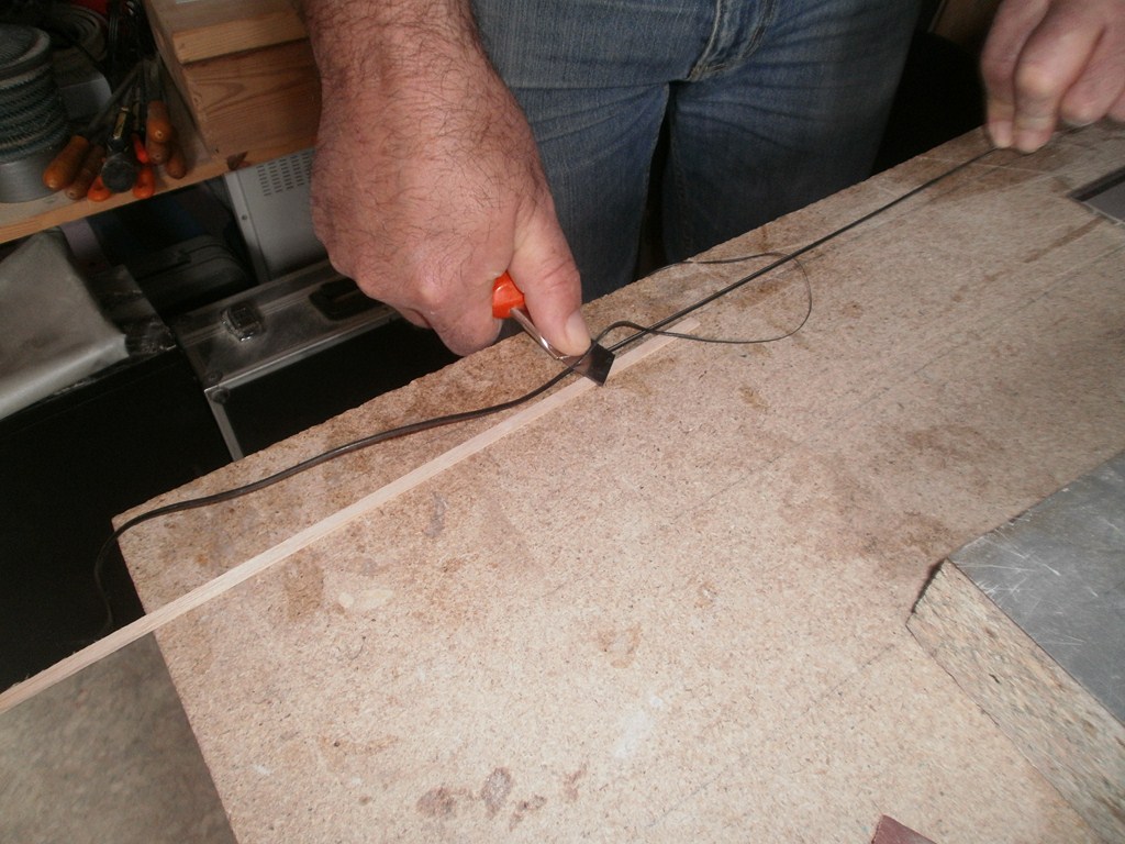 encore un petit conseil pour la mise en pratique, tout d'abord choisissez une planchette inférieur a environs 25 % aux diamètre du fils posé la lame du cutter sur la dite planchette et tiré sur le câble, électrique, je l'ai fait, ça fonctionne plutôt bien.