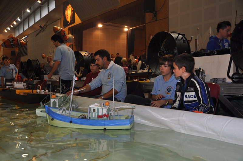 Photos aussi des membres du club (teeshirt bleu ciel) qui initient des jeunes au pilotage des bateaux, ce qui parfois suscite des vocations.