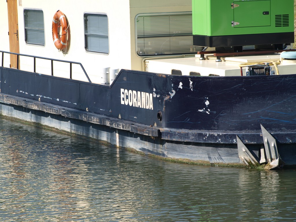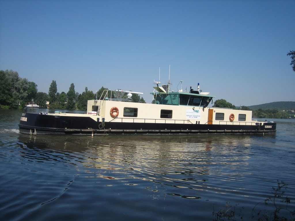 C'est un bateau amphidrome (il peut avancer dans les deux sens sans avoir a faire demi tour et de fait totalement en travers egalement).
