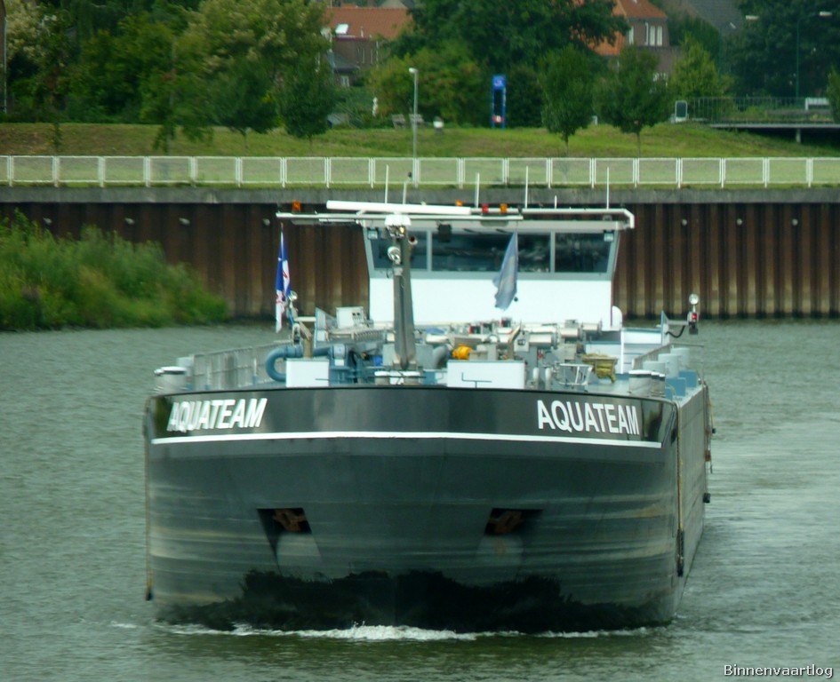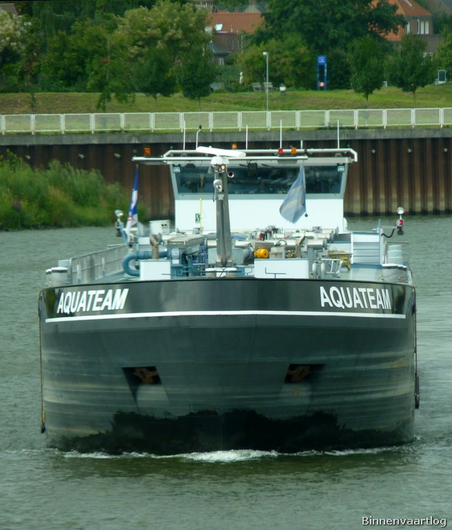 Aquateam , 85,00 x 9,60 x 3,00 , 1515 ton , Bouwjaar 2010 , Werf Santierul Naval SA in Orsova ( Roemenië ) en Breko Nieuwbouw BV in Papendrecht ( Nederland ) , 1014 pk Caterpillar en ? pk John Deere van Wijk boegschroef , eigenaar Aquateam Shipping BV in Zwijndrecht , ENI 02333764
