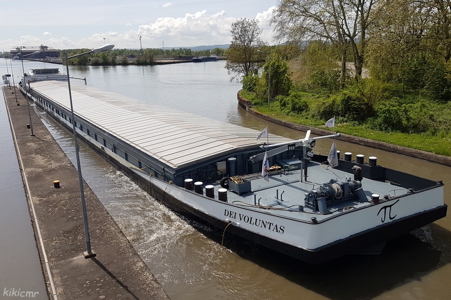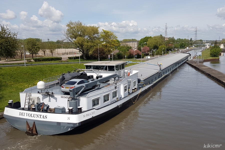 Sous la devise DEI VOLUNTAS, avalant à Richemont (57), écluse de l'Orne, sur le Camifemo (CAnal des MInes de FEr de MOselle), en avril 2019 :
