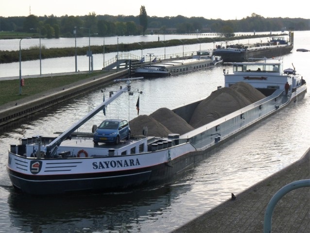 Sayonara , 85,98 x 10,49 x 3,36 , 1916ton , Bouwjaar 2002 , Werf Santierul Naval SA in Orsova ( Roemenië ) en Veka BV in Werkendam ( Nederland ) , 1379 pk Caterpillar en 320 pk DAF van Wijk boegschroef , ex Eleonora , eigenaar L.M.A. Schipper in Oud-Alblas , ENI 02325534