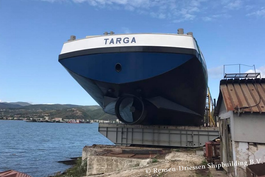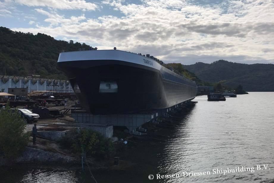 Targa , 110,00 x 11,45 x 4,56 , 3456 ton , Bouwjaar 2017 , Werf Santierul Naval Orsova SA in Orsova ( Roemenië ) en Dolderman in Dordrecht ( Nederland , 1836 pk Caterpillar en 535 pk Electromotor – Verhaar Omega-Jet boegschroef , eigenaar Inland Shipline SA in Ahn , ENI 06105607