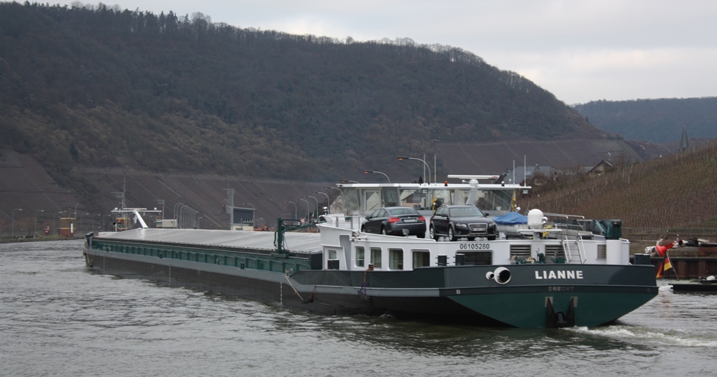 Lianne , 110,00 x 11,45 x 3,55 , 3160 ton, Bouwjaar 2010 , Werf Santierul Naval Orsova SA in Orsova ( Roemenië ) en Dolderman in Dordrecht ( Nederland ) , 1836 pk Caterpillar en 608 pk Caterpillar – Verhaar Omega-Jet boegschroef , eigenaar Feitelijke Vereniging Lianne in Brecht , ENI 06105280