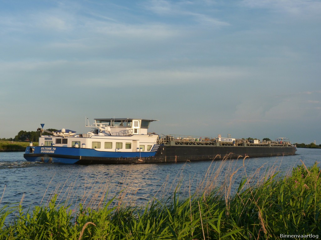 Eiltank 70 , 110,00 x 11,40 x 4,00 , 3454 ton , Bouwjaar 2004 , Werf Santierul Naval SA in Orsova ( Roemenie ) en Jac. den Breejen BV in Hardinxveld-Giessendam ( Nederland ) , 1800 pk ABC en 600 pk Caterpillar Verhaar Omega-Jet boegschroef , ex Rowinda , eigenaar Jaegers Reederei GmbH in Dbg Ruhrort , ENI 02326791