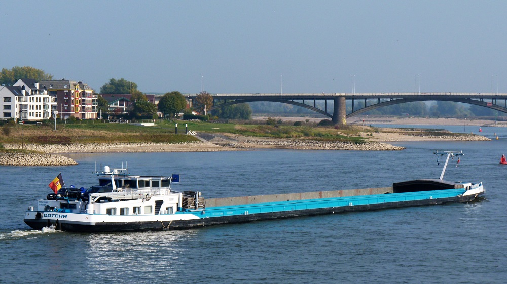 Gotcha , 109,85 x 11,45 x 3,20 , 2669 ton , Bouwjaar 2003 , Werf Santierul Naval Orsova SA in Orsova ( Roemenië ) en De Waal in Werkendam ( Nederland ) , 2400 pk ABC en 685 pk Cummins - van Wijk boegschroef , ex Liga , eigenaar C. Blommaert in Schoten , ENI 06003884