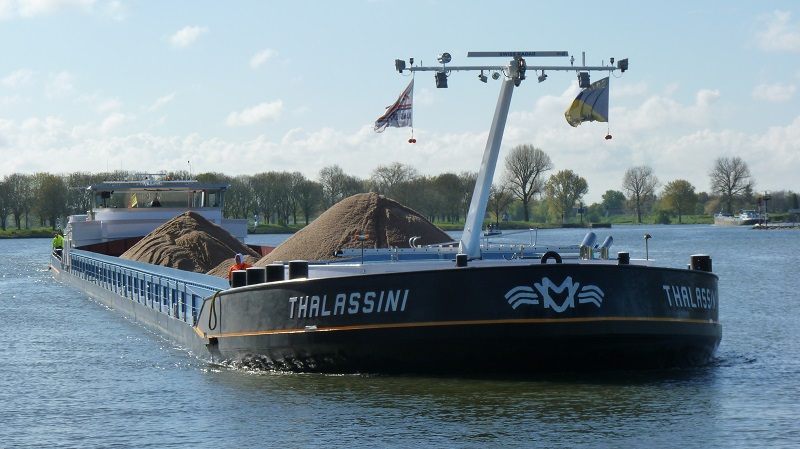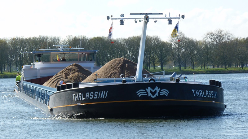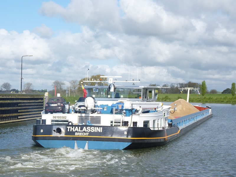 Thalassini , 110,00 x 11,45 x 3,66 , 3230 ton , Bouwjaar 2017 , Werf Santierul Naval Orsova SA in Orsova ( Roemenië ) en Dolderman in Dordrecht ( Nederland ) , 1622 pk Caterpillar en 608 pk Caterpillar - Veth-Jet boegschroef , eigenaar Feitelijke Verenigng Thalassini in Brecht , ENI 06105582