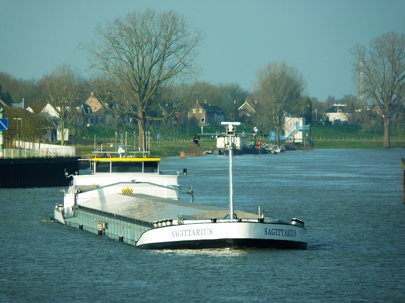 Sagittarius , 109,90 x 10,55 x 3,18 , 2465 ton , Bouwjaar 1999 , Werf Santierul Naval Orsova Sa in Orsova ( Roemenië ) , 1521 pk Caterpillar en 380 pk Volvo Penta - Verhaar Omega-Jet boegschroef , ex Pecunia , eigenaar Vof Sagittarius ( A.B.J.Janssen ) in Nijmegen , ENI 02329036