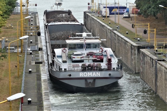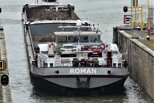 Roman , 110,00 x 11,45 x 3,62 , 3072 ton , Bouwjaar 1998 , Werf Santierul Naval SA in Orsova ( Roemenië ) en De Gerlien van Tiem BV in Druten ( Nederland ) , 2 x 1224 pk Caterpillar en 2 x 320 pk DAF van Tiem boegschroef , ex W.de.Seck , ex Nova , ex Jowi , eigenaar Roman Scheepvaart Vof in Schinveld , ENI 02327616