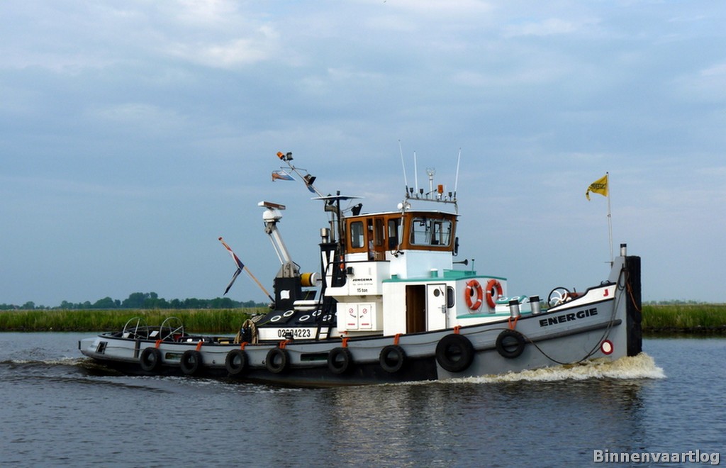 Energie , 17,32 x 4,56 x 2,05 , 15 ton , Bouwjaar 1940 , Werf Bijlsma in Wartena ( Nederland ) , 365 pk Caterpillar , ex 2 x Navic , ex R.V.16 , ex Droogdok 8 , ex S.H.O 24 , ex Heuko X , ex Klokner STP 10 , ex Gepke 2 , ex De Jonge Gerbrand 5 , eigenaar R.Jongema in Nijega , ENI 02004223