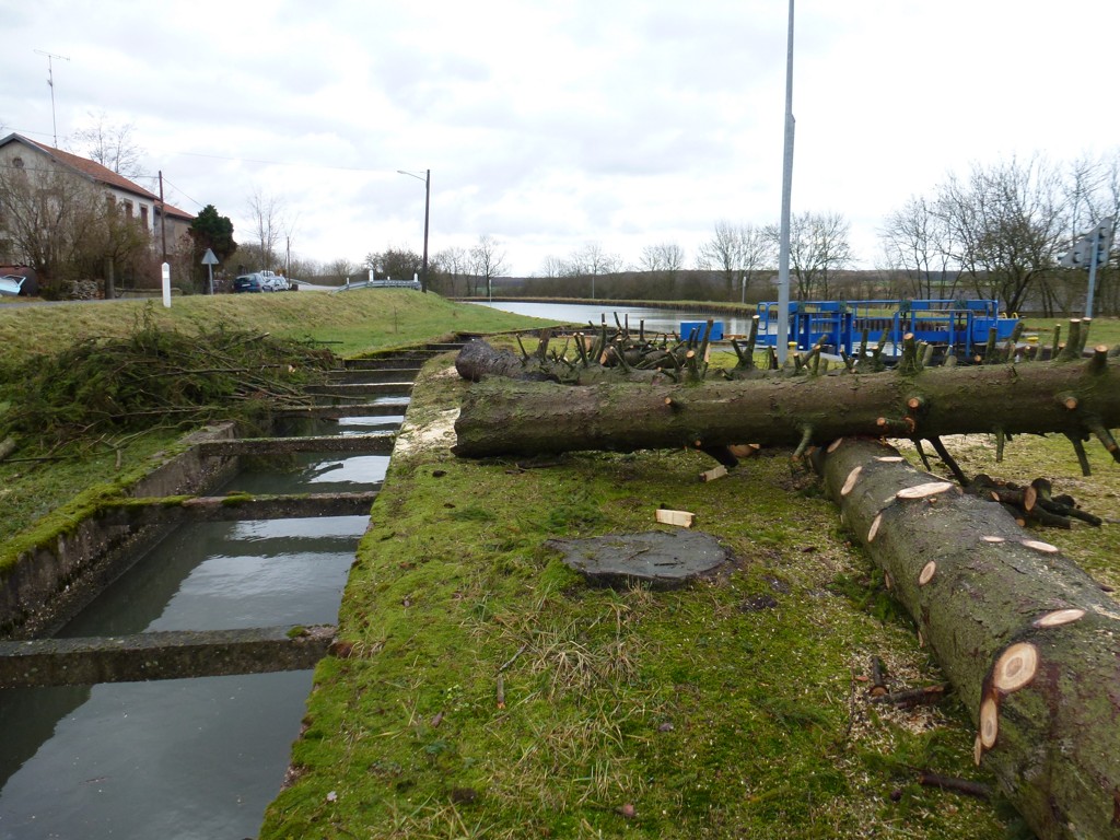 Il y a bien longtemps, dans les années 60, un marinier a laissé à l'éclusier de Mouacourt, écluse n°15 du versant Meurthe du canal de la Marne au Rhin, quelques sapins qu'il avait récupéré quelques jours avant du côté de Saverne. L'éclusier, mon grand-père, les replante donc sur le terreplein de l'écluse, entre le sas et le petit canal (refoulement des pompes), de la cabine de commande au niveau des portes amont.