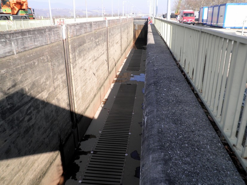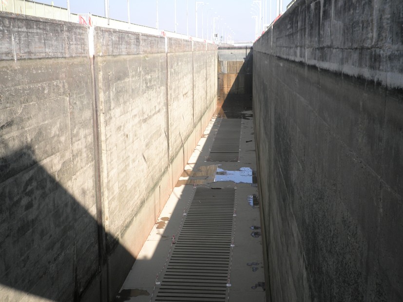 - ...dans le sas, la porte amont au loin...