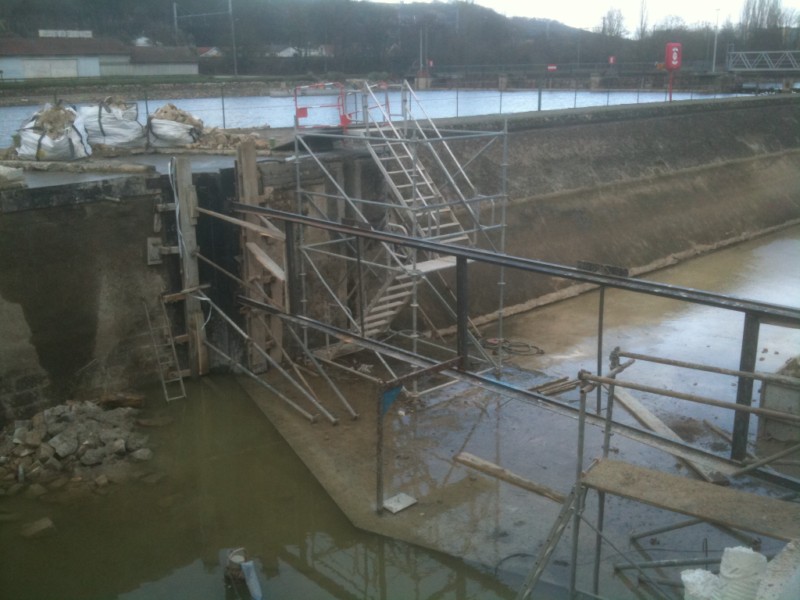 Un chose comme meme, elle n'a pas d'importance maintenant parce que le soubassement en pierre de taille qui etend sur le lit du canal du Pont de Gain sur la derivation, est a 2m, et aujourdhui l'eau etait a moins 2m40 du retenue normale donc pas de risque.