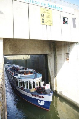 Cette photo du Chardonnay sortant de l'écluse de Sablons est pour mon ami Baron qui a passé tant d'années dans le mirador de cette écluse sans jamais ou très peu de fois voir un bâteau sortir par la porte aval...