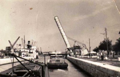 Pour d'autres vues : La barque BAMBOU est aussi photographiée dans ce sas. Le navire DAHLIA et la barque CHAMEAU sont dans le bassin. Le CITERNA 4 s'engage dans le canal. Le CITERNA 18 sort de cette écluse côté Rhône.