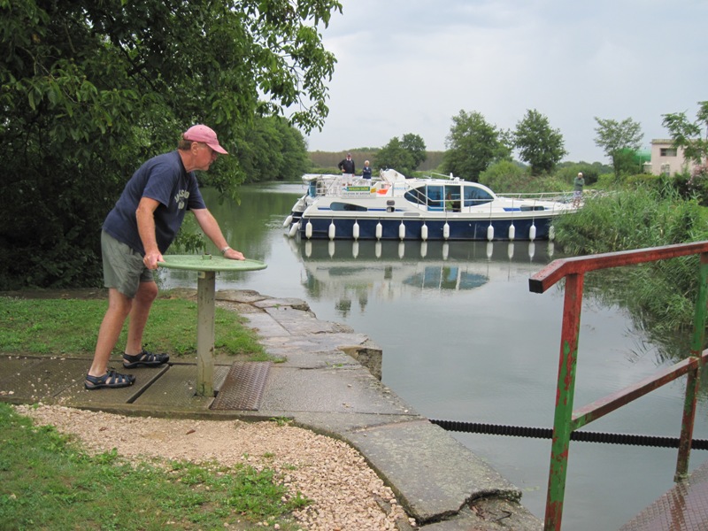 Ce grand volant remplace, pour des raisons de sécurité, les manivelles des portes des écluses sur la Seille.
