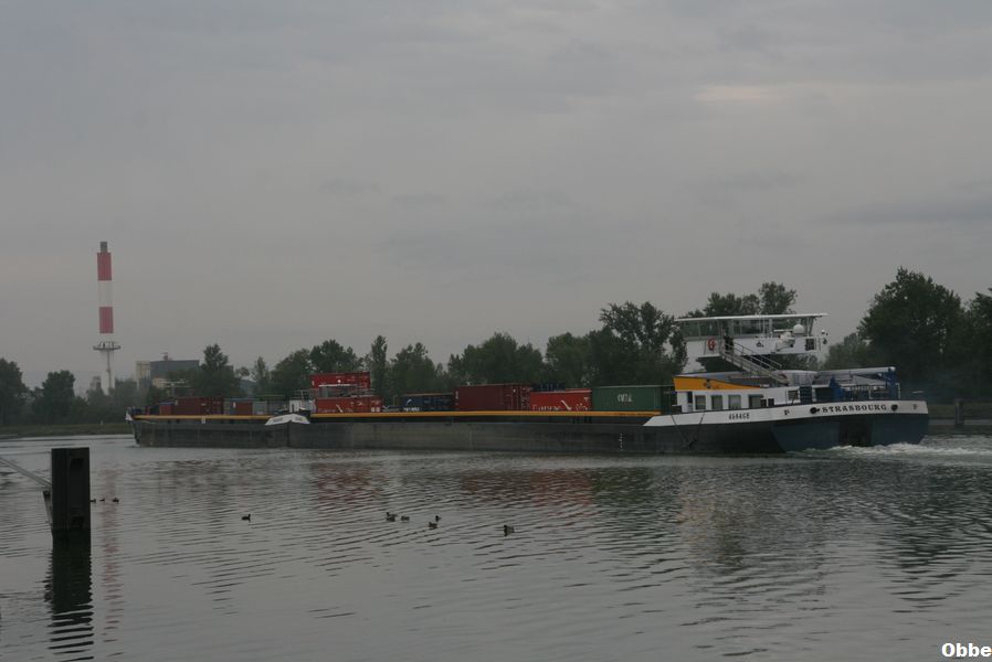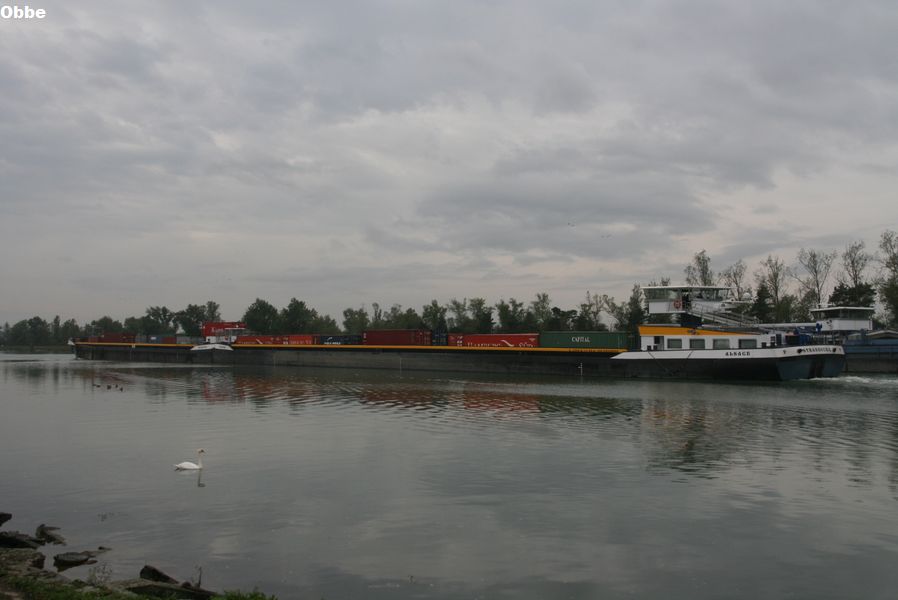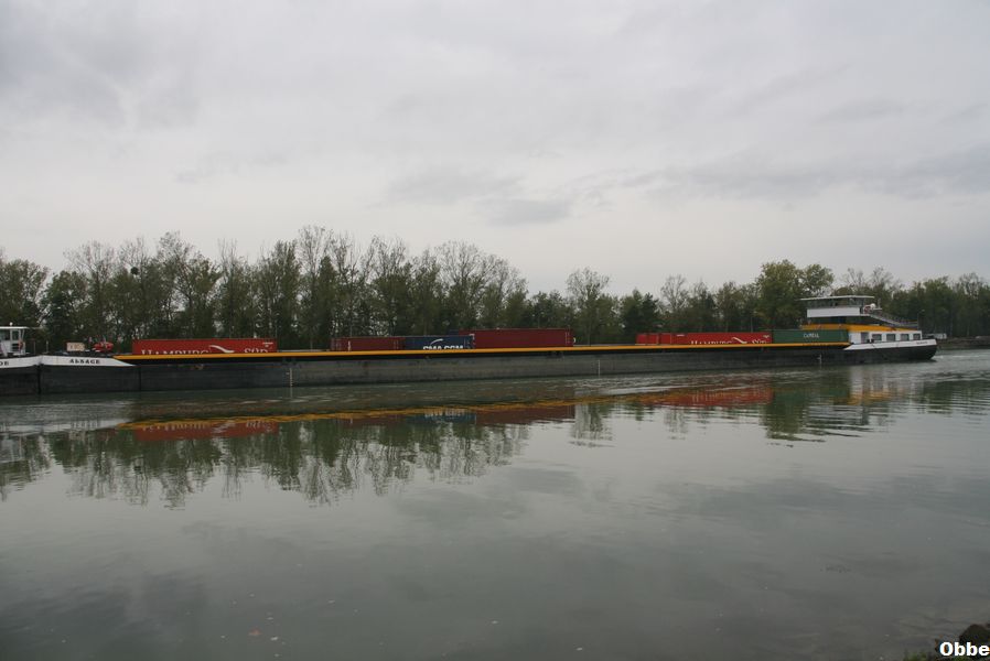 Alsace , 104,92 x 11,45 x 2,55 , 1949 ton , Bouwjaar 2007 , Werf Begej Shipyard in Zrenjanin ( Servië ) en Dolderman BV in Dordrecht ( Nederland ) 2 x 1065 pk Caterpillar en 350 pk John Deere van Tiem boegschroef , ex Alsace, eigenaar Danser Container BV in Rotterdam , ENI 02329040