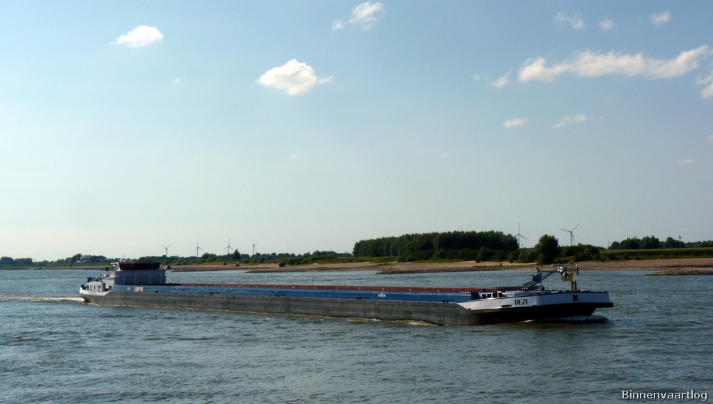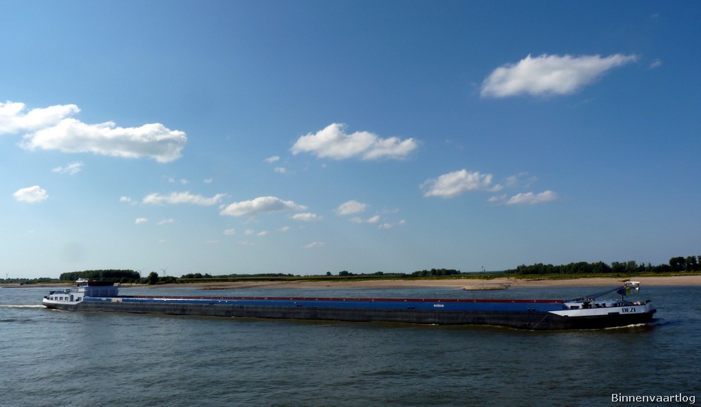 Dezi , 135,00 x 11,45 x 3,22 , 3333 ton , Bouwjaar 2004 , Werf Begej Shipyard in Zrenjanin ( Servie ) en De Groot Motoren BV in Dordrecht ( Nederland ) , 2 x 1065 pk Caterpillar en 2 x 495 pk Caterpillar Verhaar Omega-Jet boegschroef , ex Marte-Meo , ex Yemaya , eigenaar Duwa Vof in Rotterdam , ENI 02326350