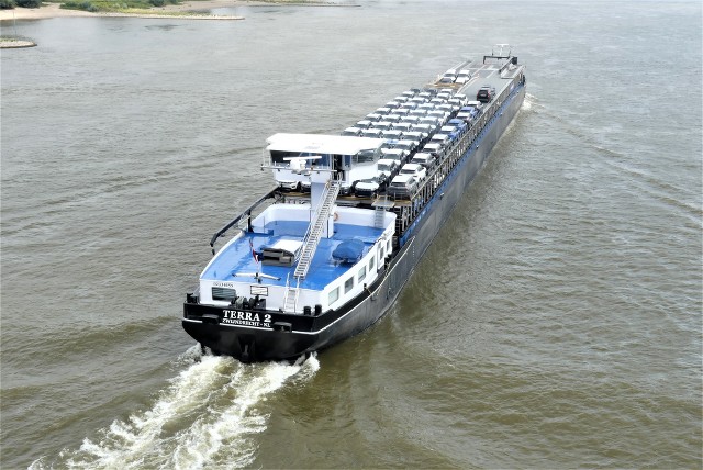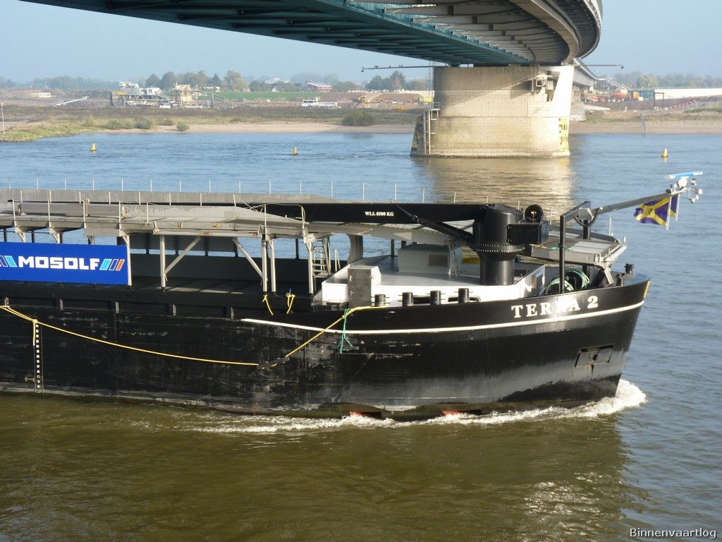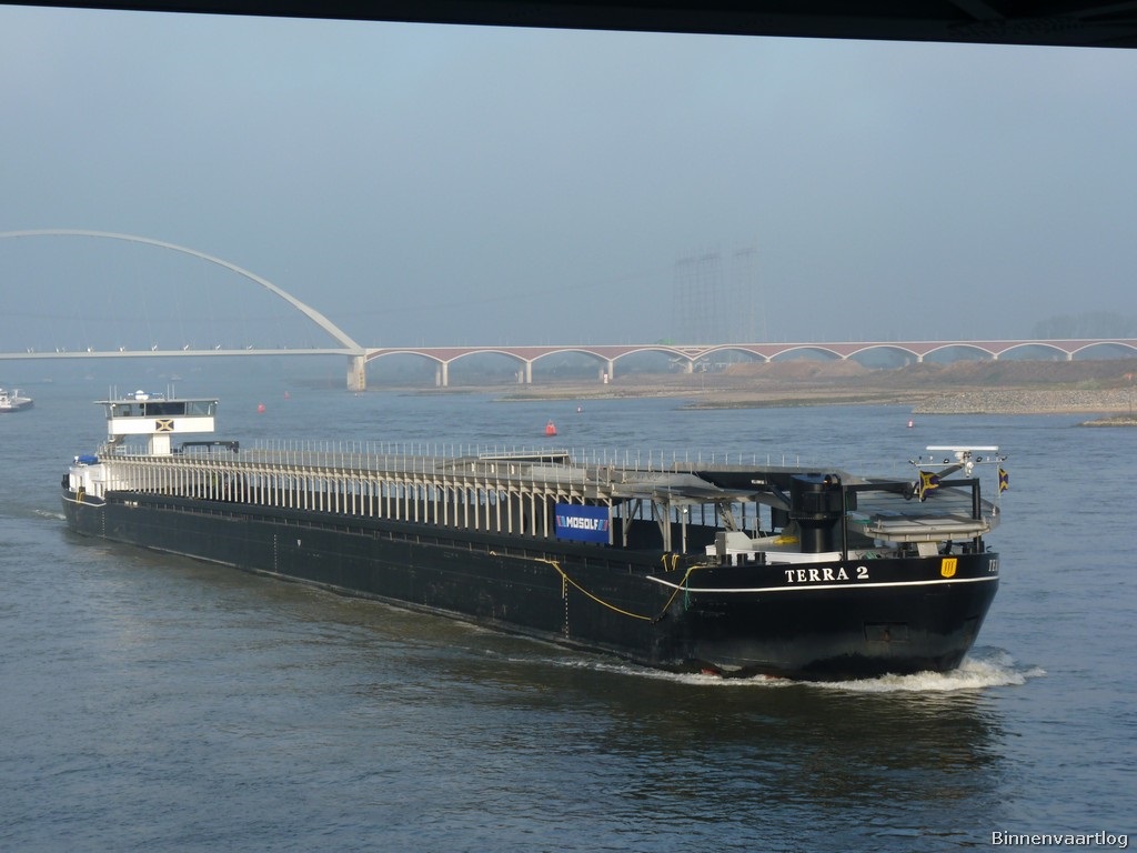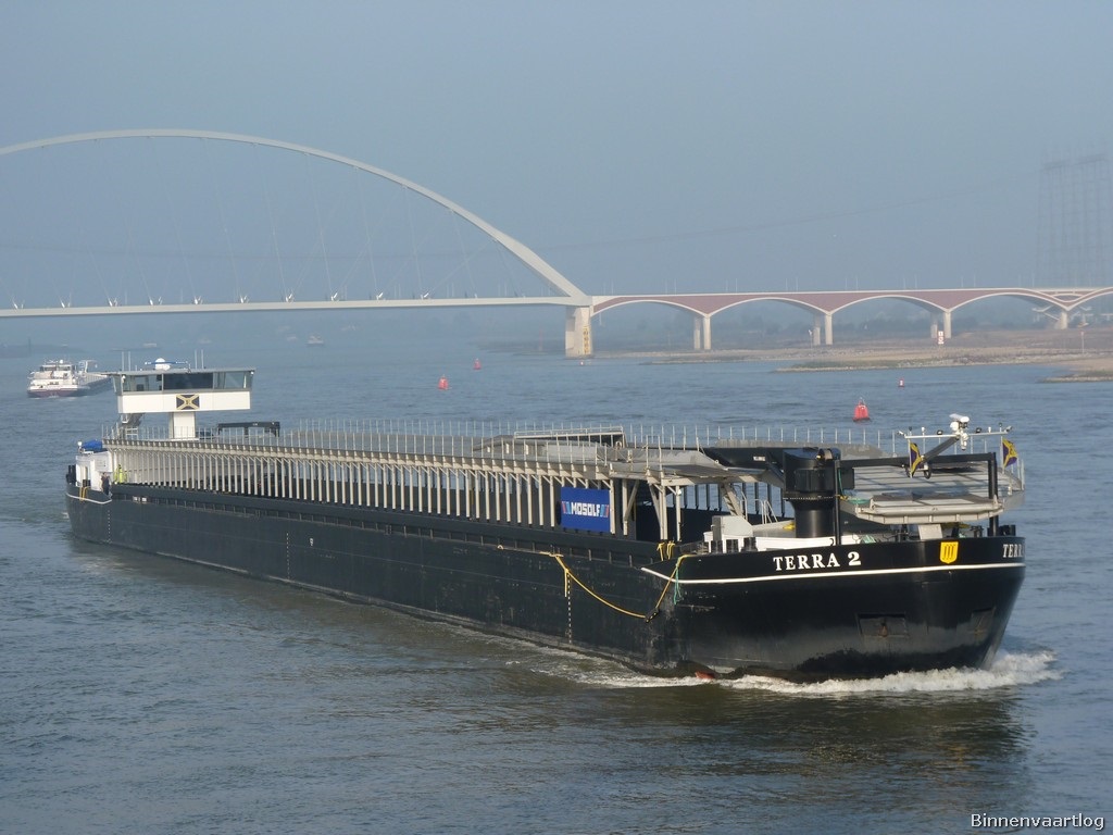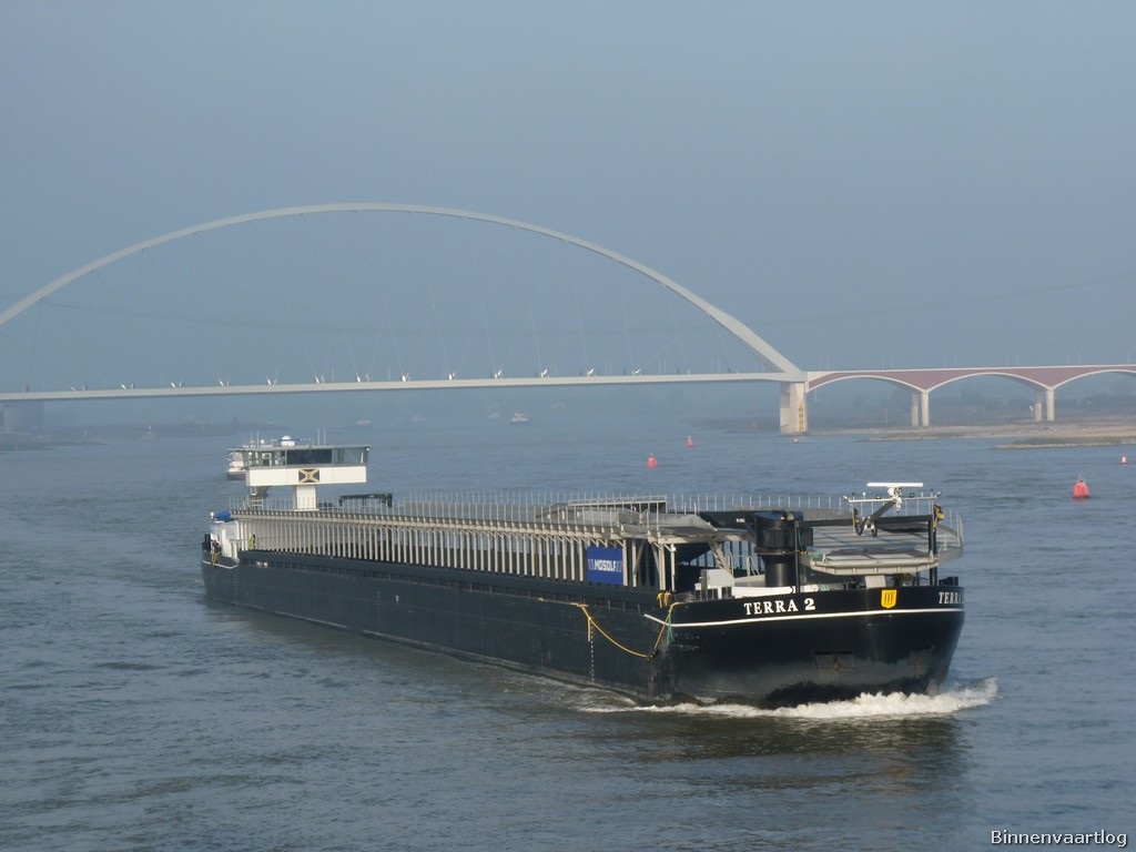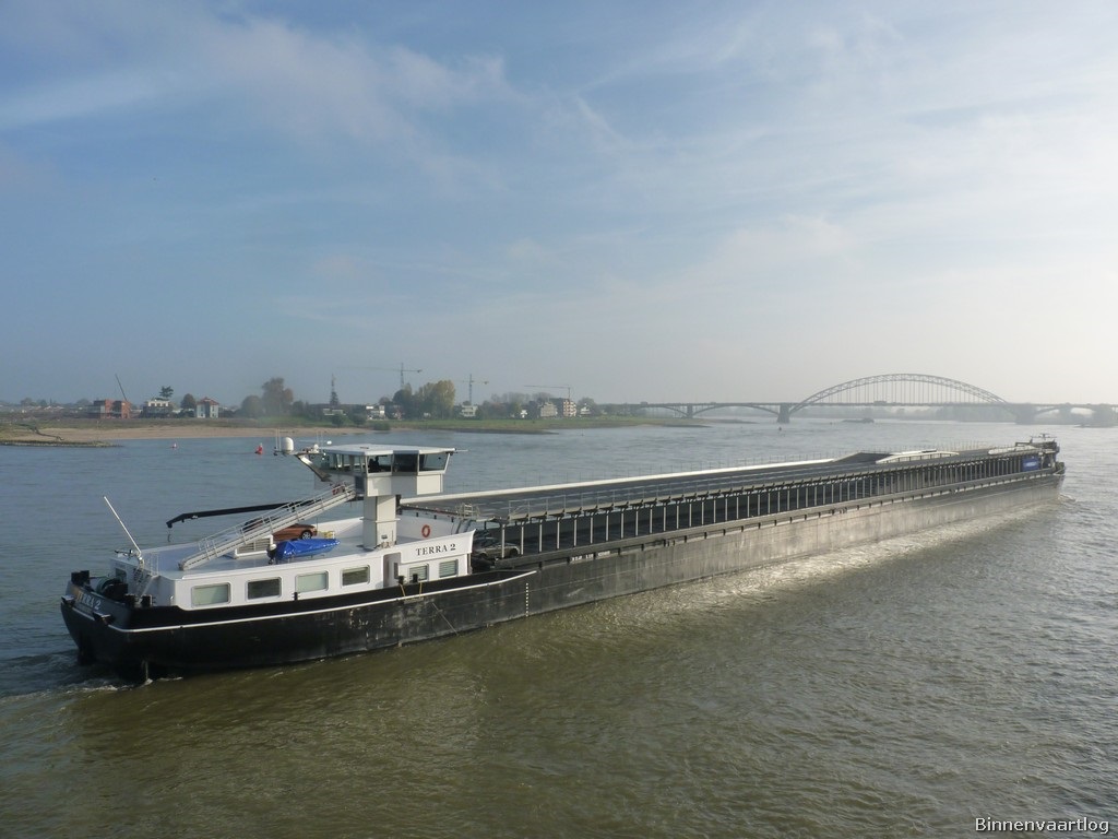 Terra 2 , 135,00 x 11,45 x 2,20 , 1090 ton , Bouwjaar 2014 , Werf in China en Werf ‘t Ambacht in Hendrik Ido Ambacht ( Nederland ) , 2 x 680 pk Caterpillar en 2 x 585 pk John-Deere boegschroef , eigenaar Terra Scheepvaartbedrijf BV in Zwijndrecht , ENI 02334055