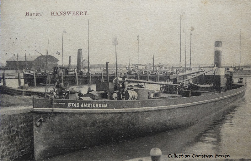 Voici une jolie carte d'Hansweert avec un bateau identifié. La carte a circulé en 1912