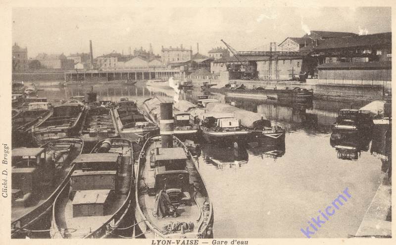 D'abord sur une carte postale représentant la gare d'eau de Lyon-Vaise :